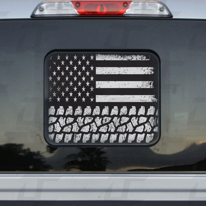 American Flag Tire Tread Rear Window Printed Accent Decal For Ford F150/F250 (2015-2025)